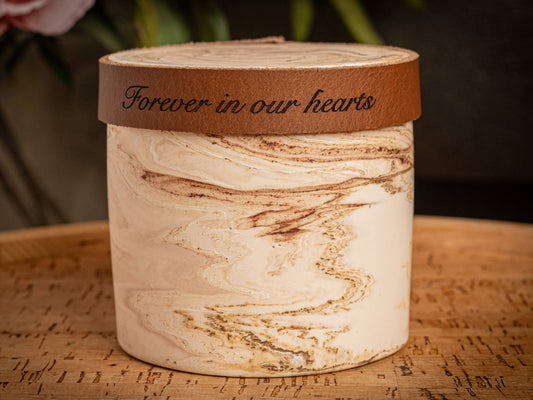 Handmade Two-Tone Human or Pet Concrete Cremation Urn with Leather Band - Medium Size, Personalizable