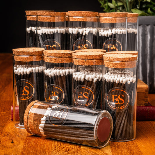 Luxury Long Matches in a Glass Jar with Strike Pad, Ideal Gift or Accessory, Black with White Tip