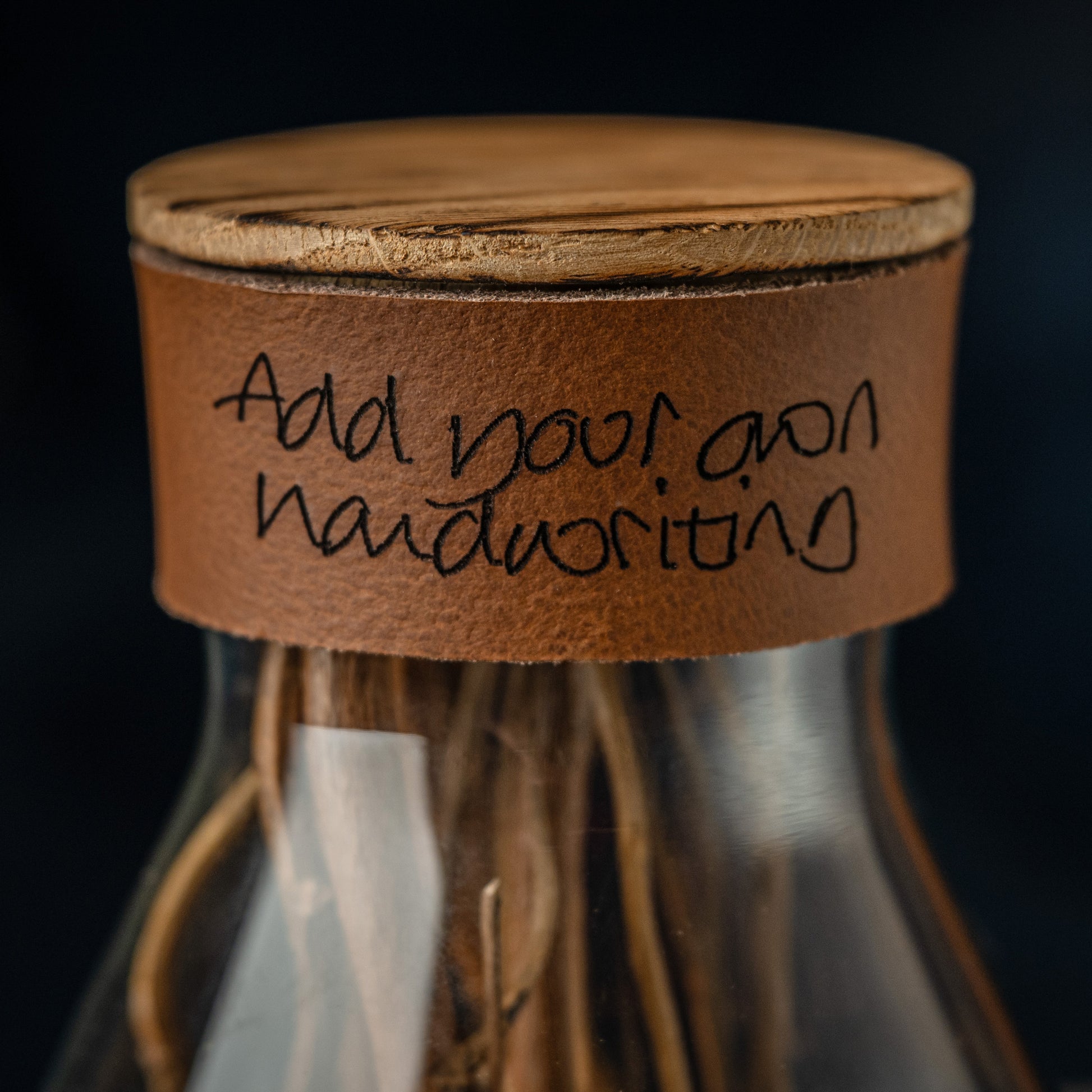 Preserved Rose in Deep Red, Glass Vessel, Natural Materials, Cognac Brown Personalised Leather, Sentiment Gift