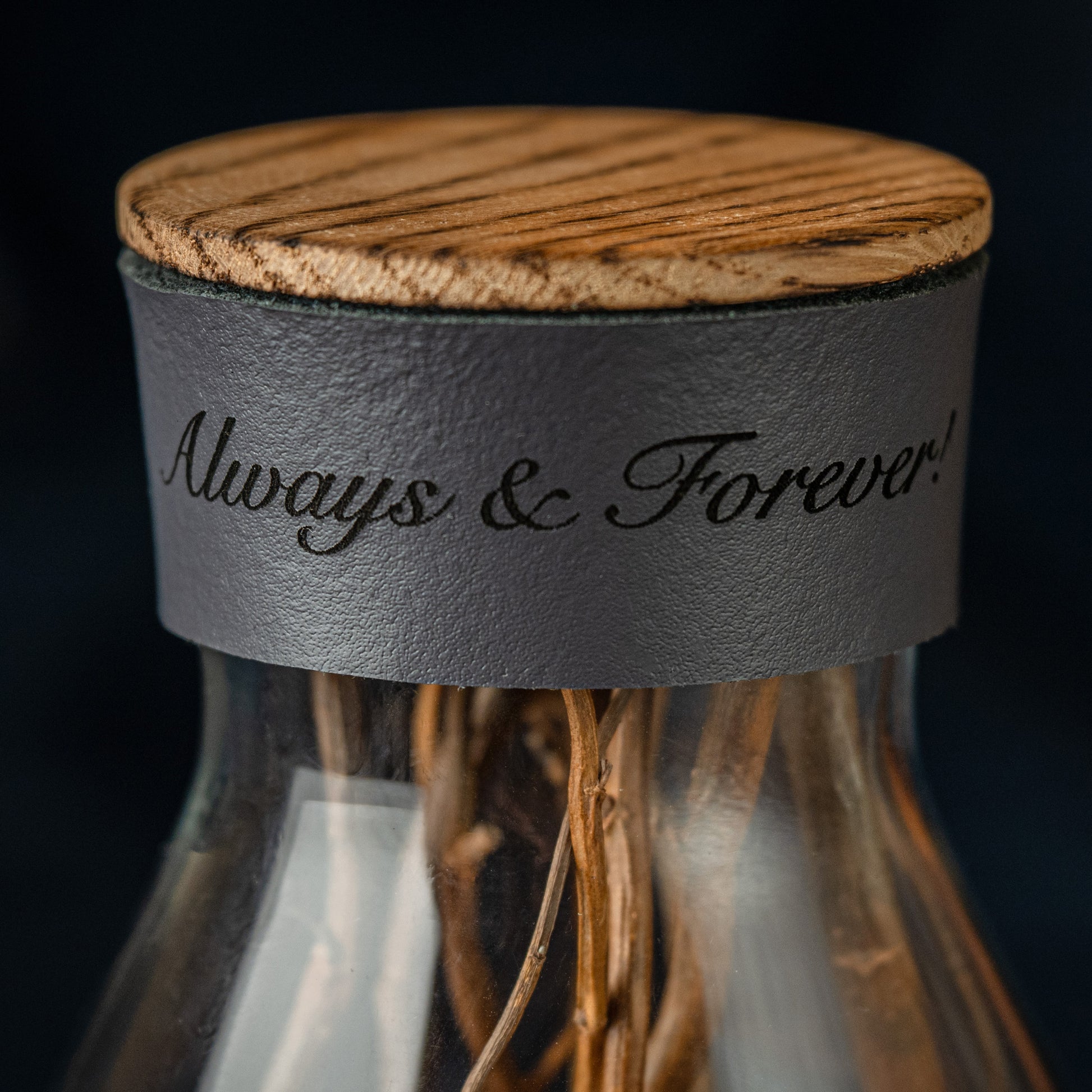 - Smoke Grey Leather with your own personalised laser engraved dedication