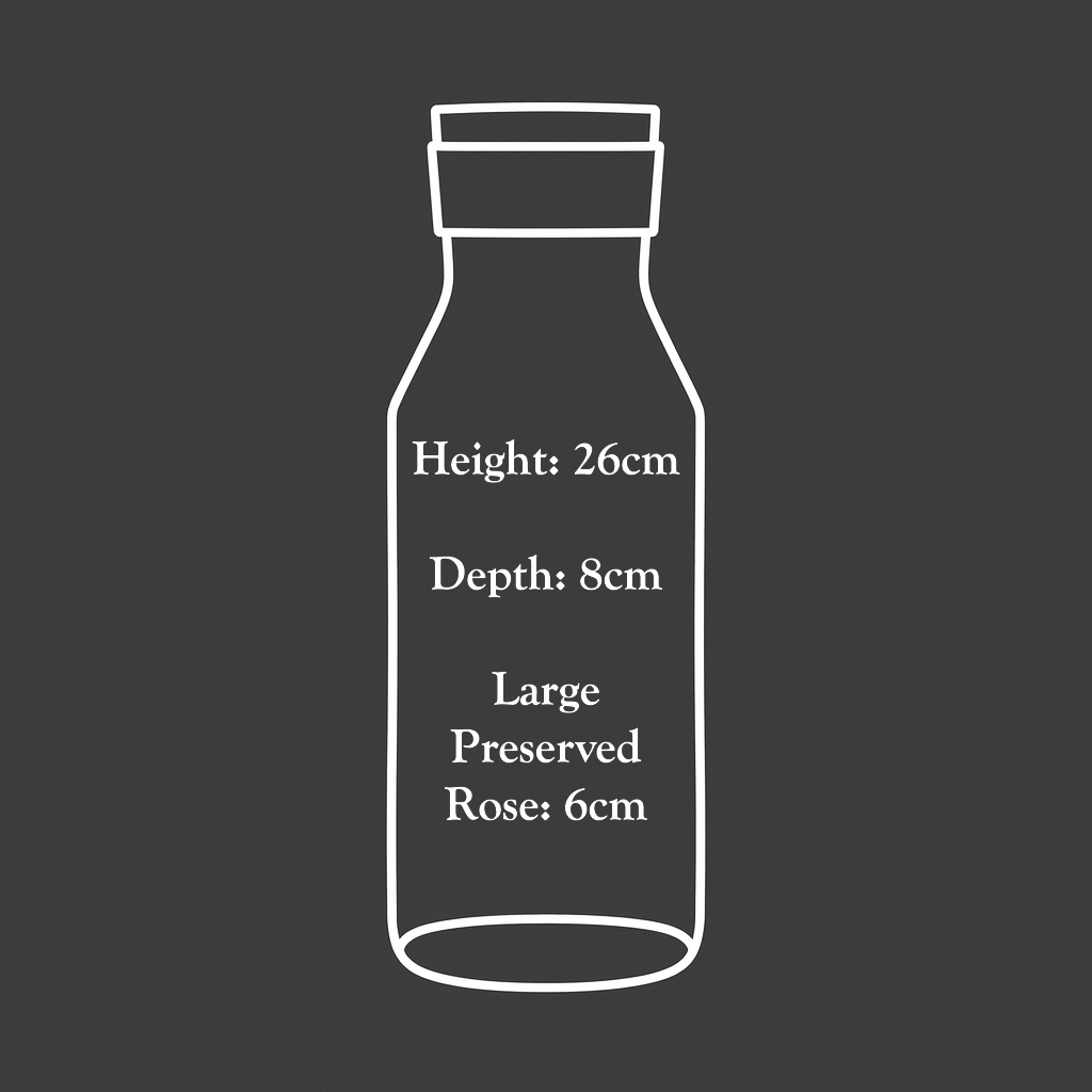 A clear contemporary glass vessel containing natural grey reindeer moss with a preserved large 100% natural rose in vintage nude, decorative dried willow branches, rustic oak lid and smoke grey leather for you to personalise with your own dedication. A beautiful sentiment vessel designed for any occasion, a unique gift for a loved one or a special remembrance to treasure forever.
